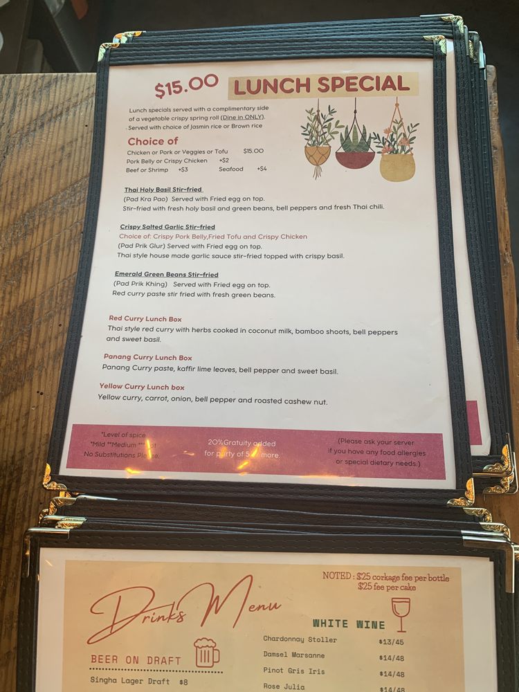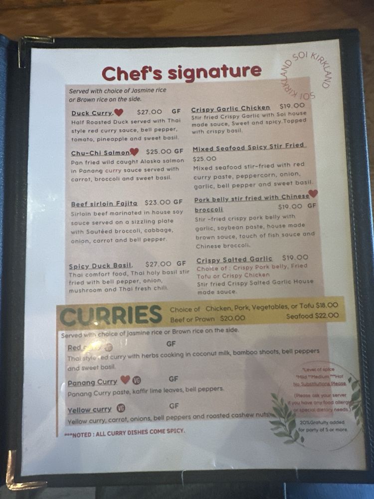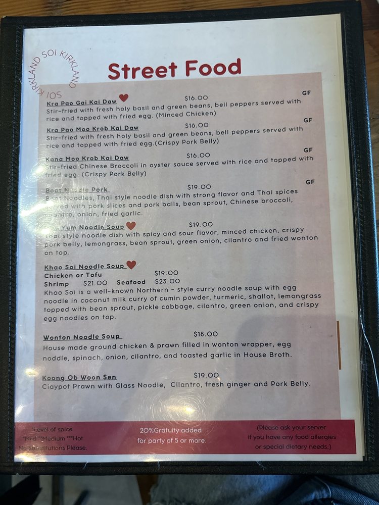SOI Restaurant and Bar in Kirkland, WA, offers a trendy and intimate Thai dining experience with a unique blend of traditional and modern dishes. The menu features a variety of options, including Coconut Almond Prawns, Keiw Pu, and Khao Soi for lunch. The lunch combos like Panang Curry with Keiw Pu and Phad Plik King with Phad Thai offer a taste of different flavors in one meal. With a focus on pescatarian and vegan options, SOI ensures that there is something for everyone to enjoy. The restaurant provides a range of amenities, from outdoor seating to valet parking, making it a convenient and enjoyable dining destination. The vibrant atmosphere and flavorful dishes at SOI make it a must-visit spot for those looking to experience a taste of Thailand in the heart of Kirkland.